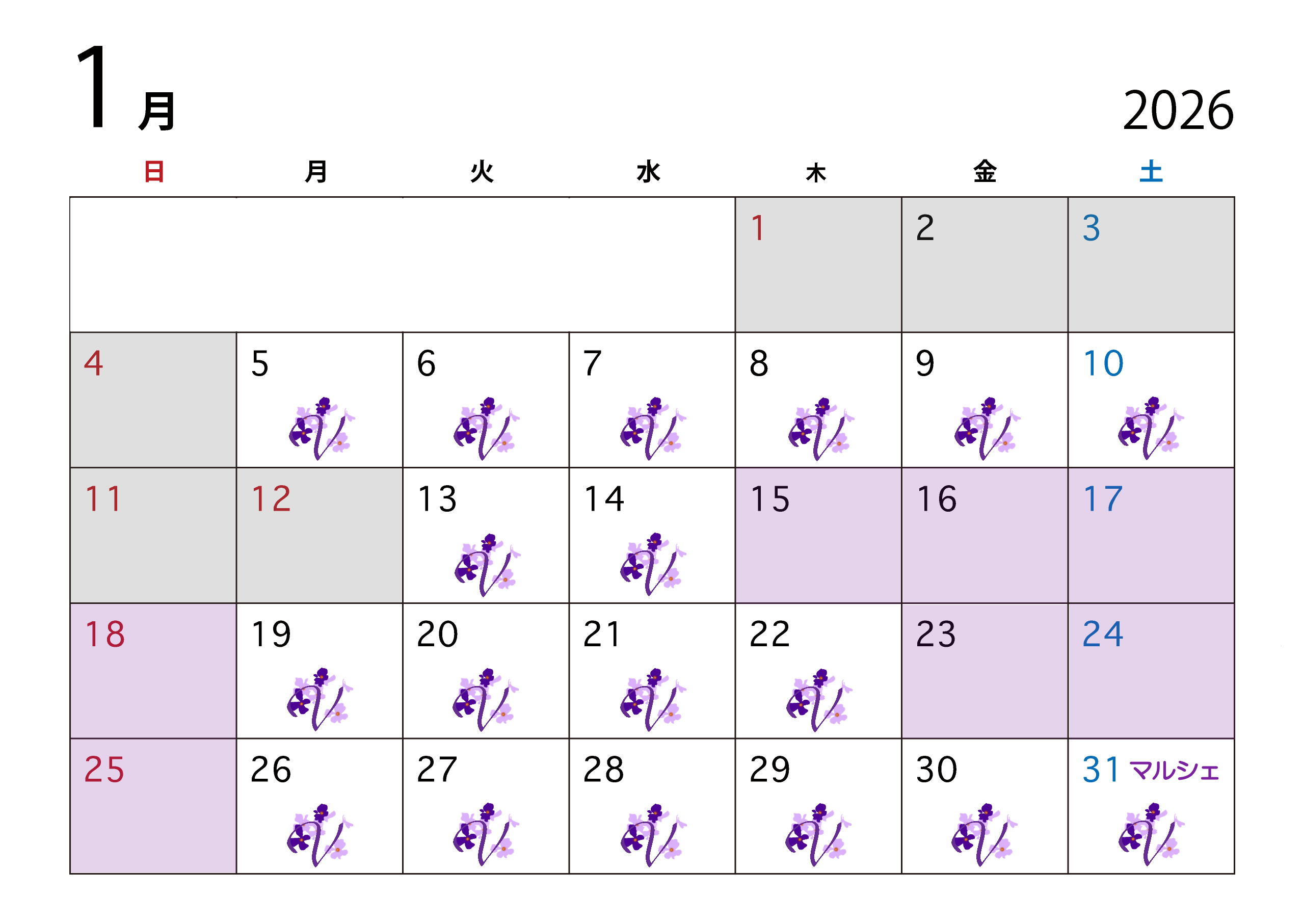 1月の営業日