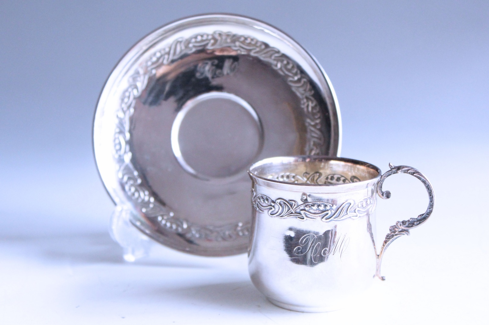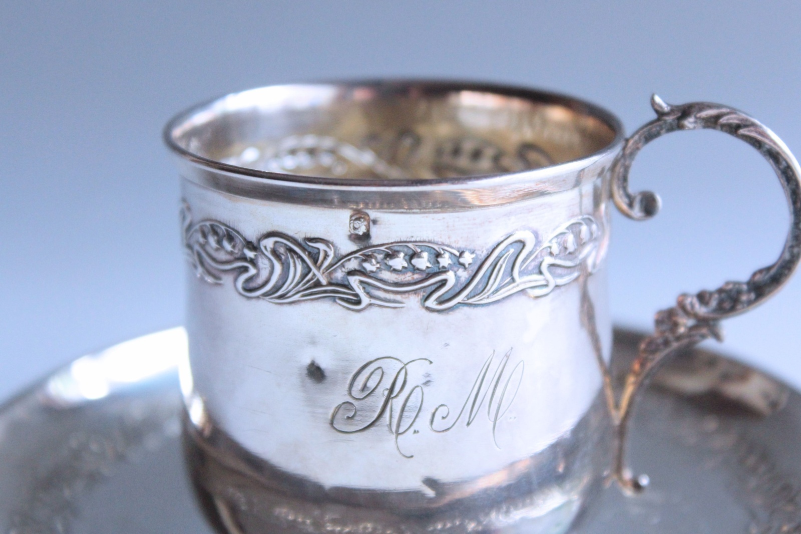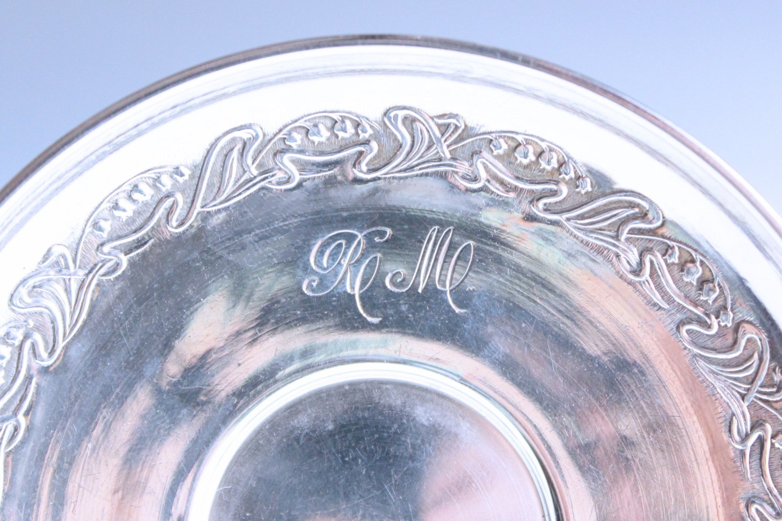 RとMのイニシャルが刻まれた、ミネルヴァの刻印のある純銀です。