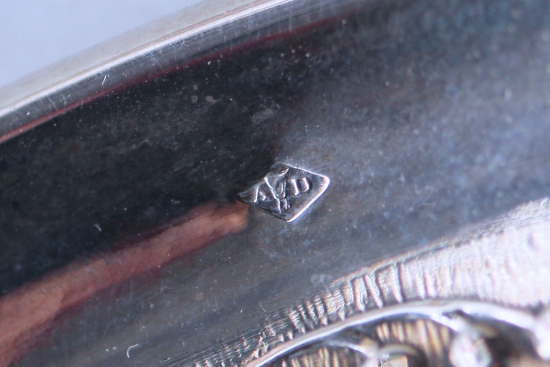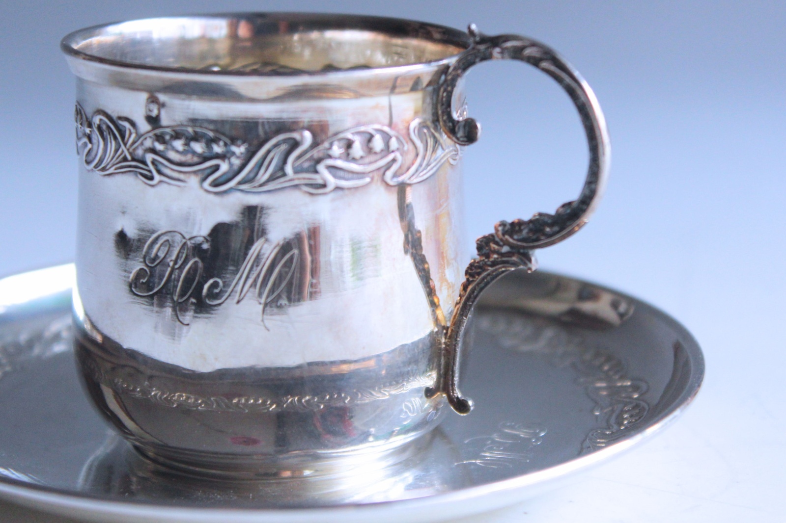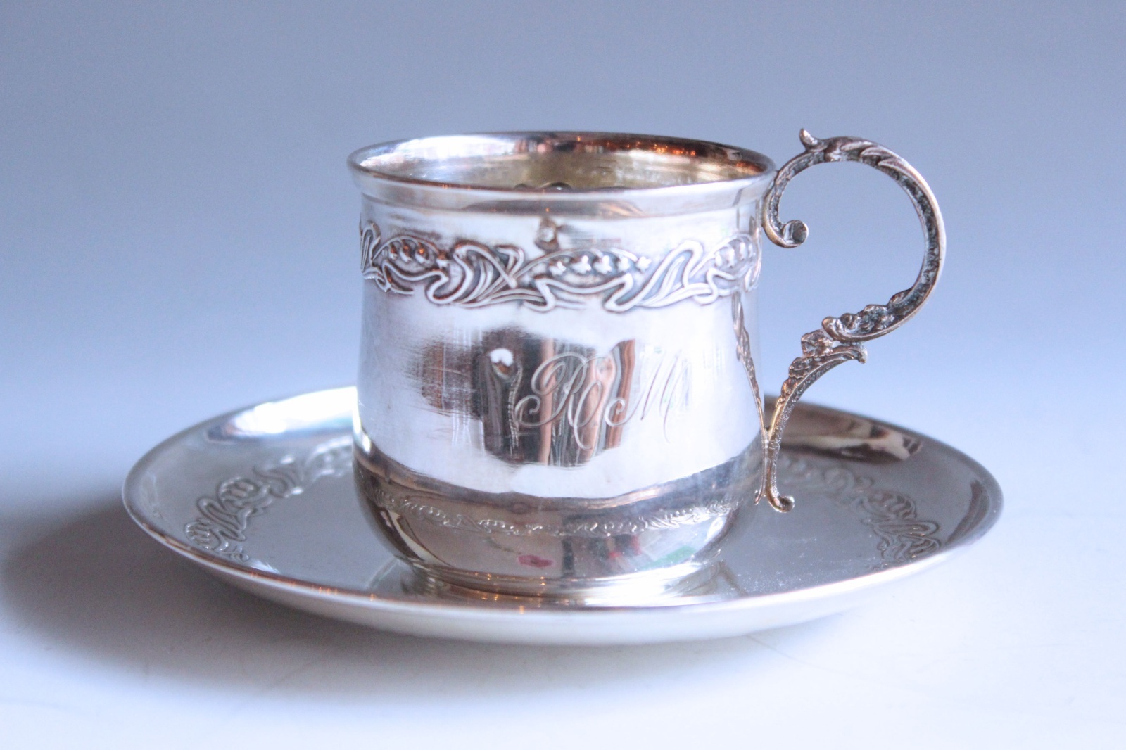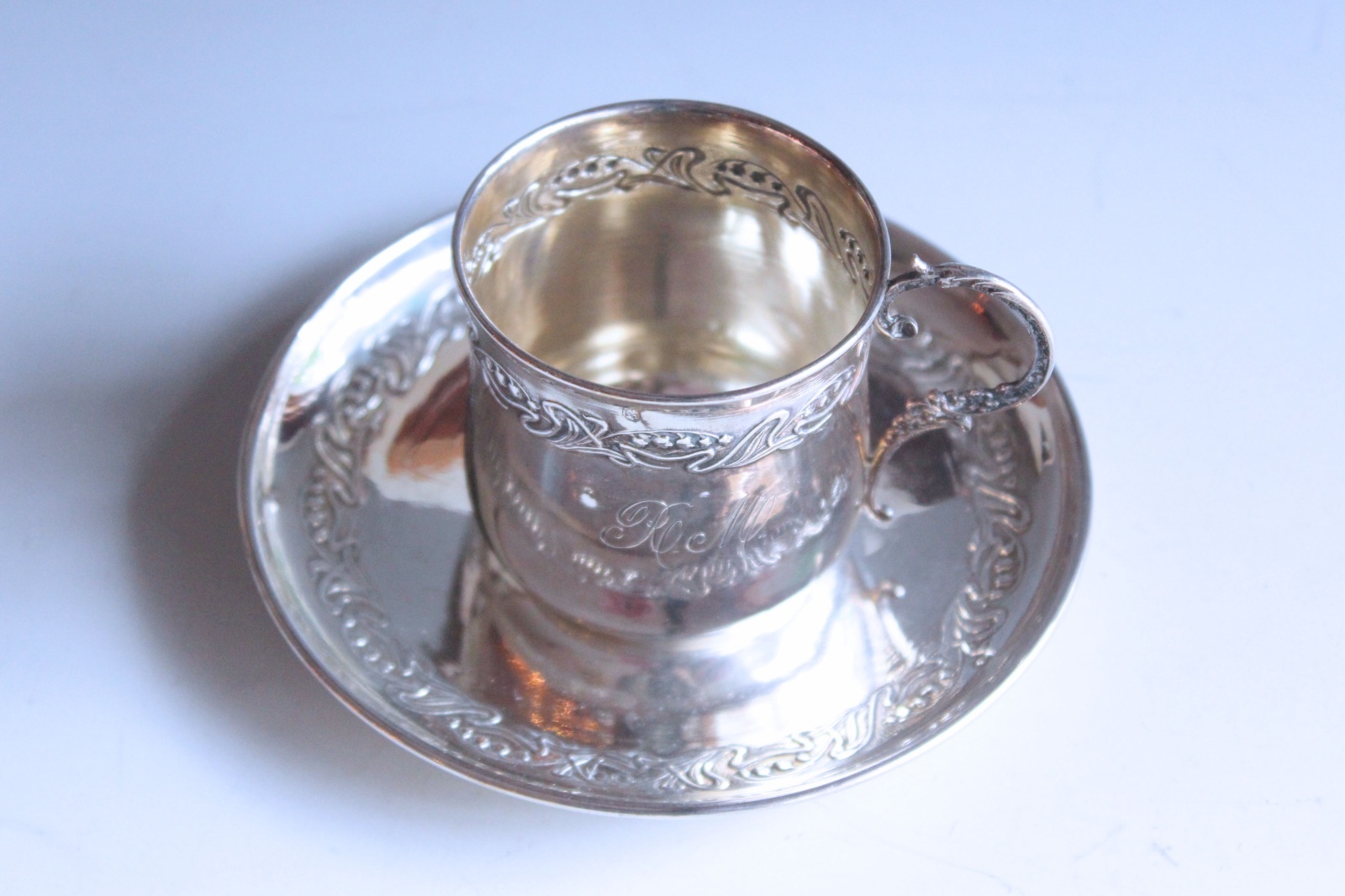 RとMのイニシャルが刻まれた、ミネルヴァの刻印のある純銀です。