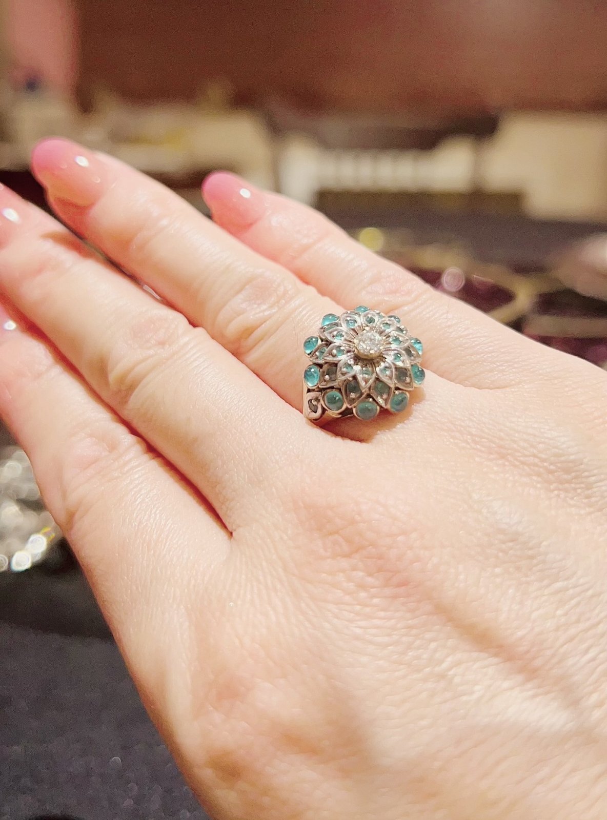 アール・デコには、オリエンタルなエキゾチックな雰囲気であったでしょう。お着物にもスーツにも、ドレスにも合いそう。。!あらためて、エメラルドリングって素敵だなと思いました。