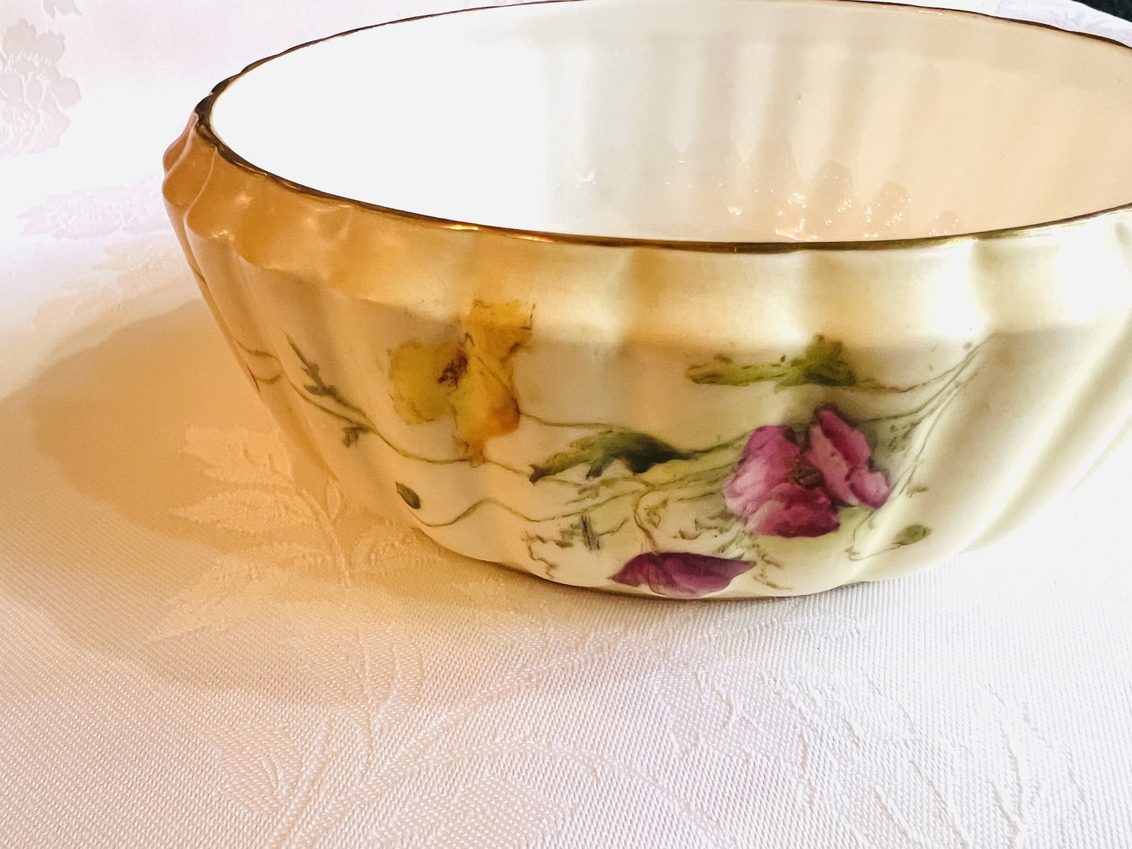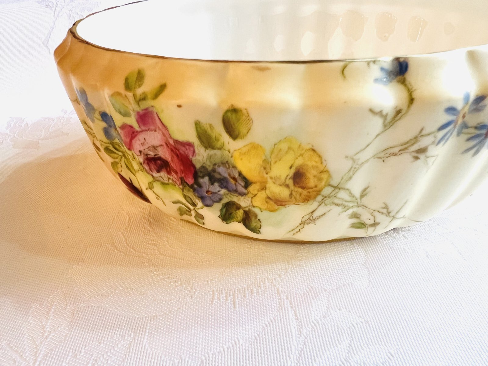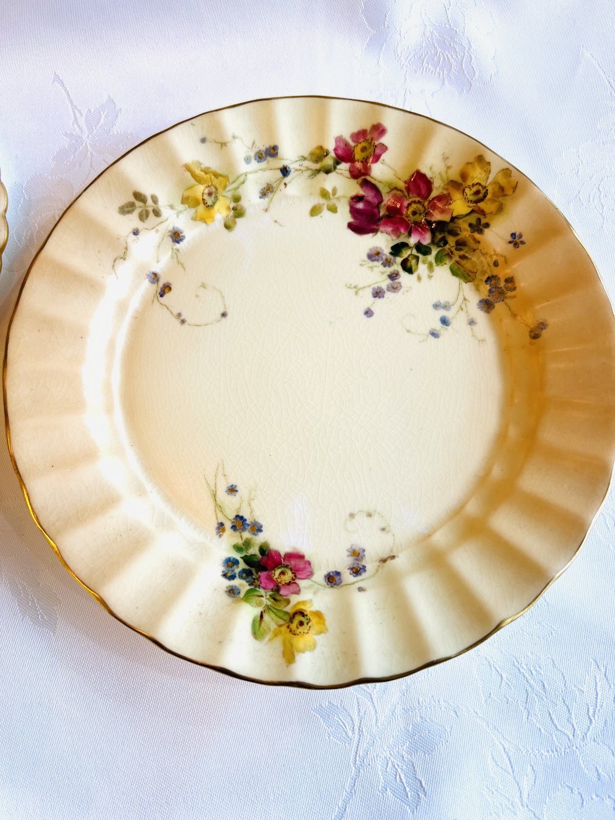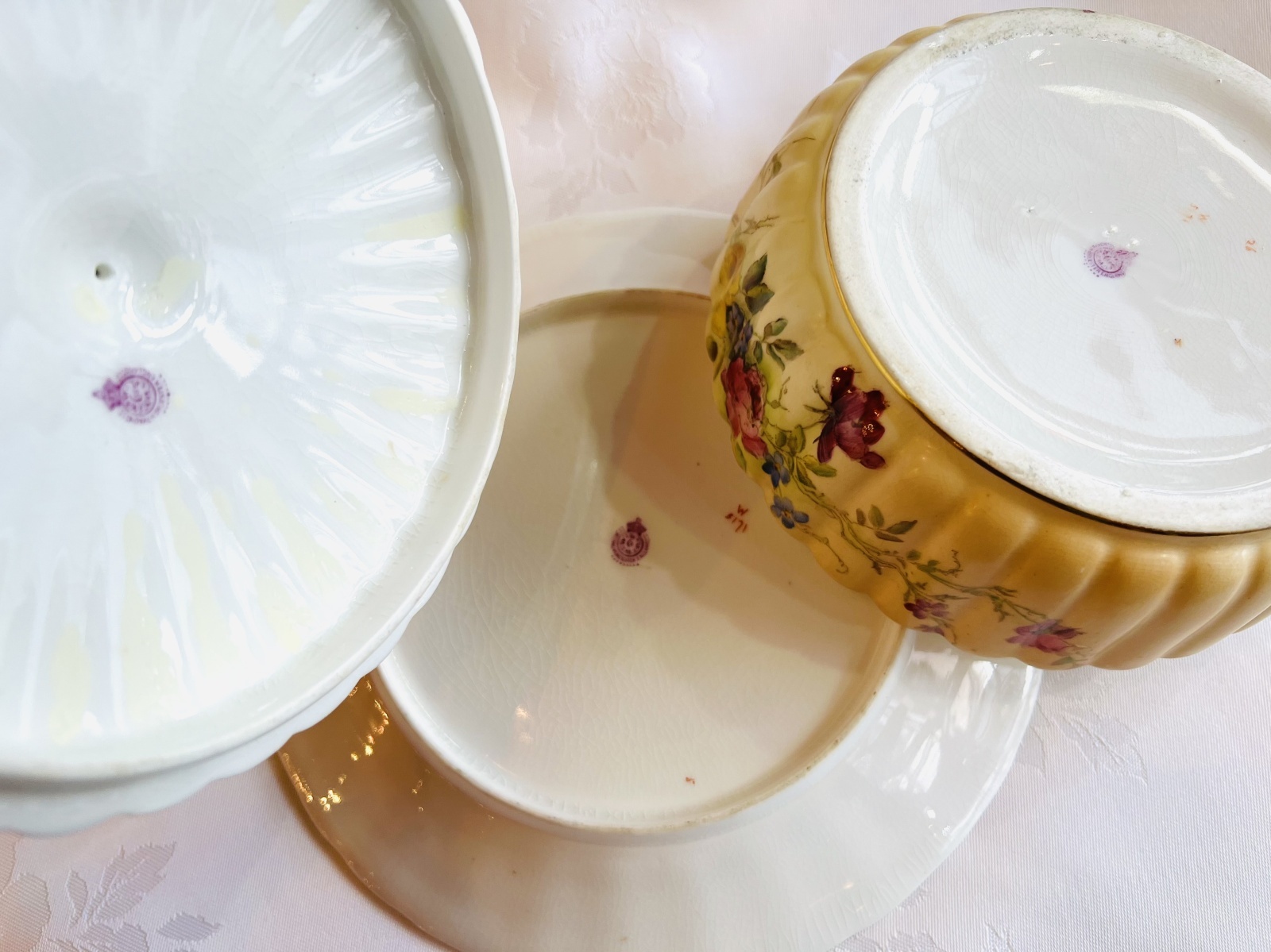 日本の薩摩焼きに影響を受けたブラッシュアイボリーは、真っ白な素地にあえてクリーム色の色を付け、左右非対称の柄を手描きしたもの。なかでもロイヤルウースターは、この時期ブラッシュアイボリーに力を入れていました。