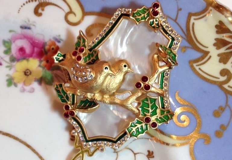小さな柊の葉と、周りを囲むグリーンのラインには発色の良いグリーンのエナメルを2色使いました。